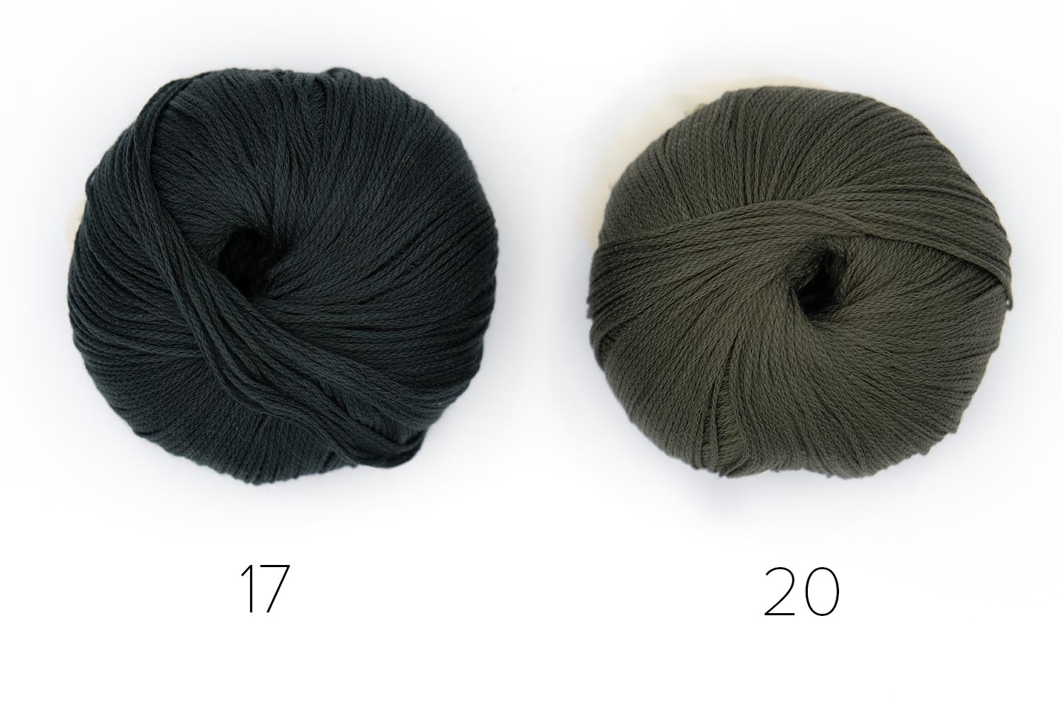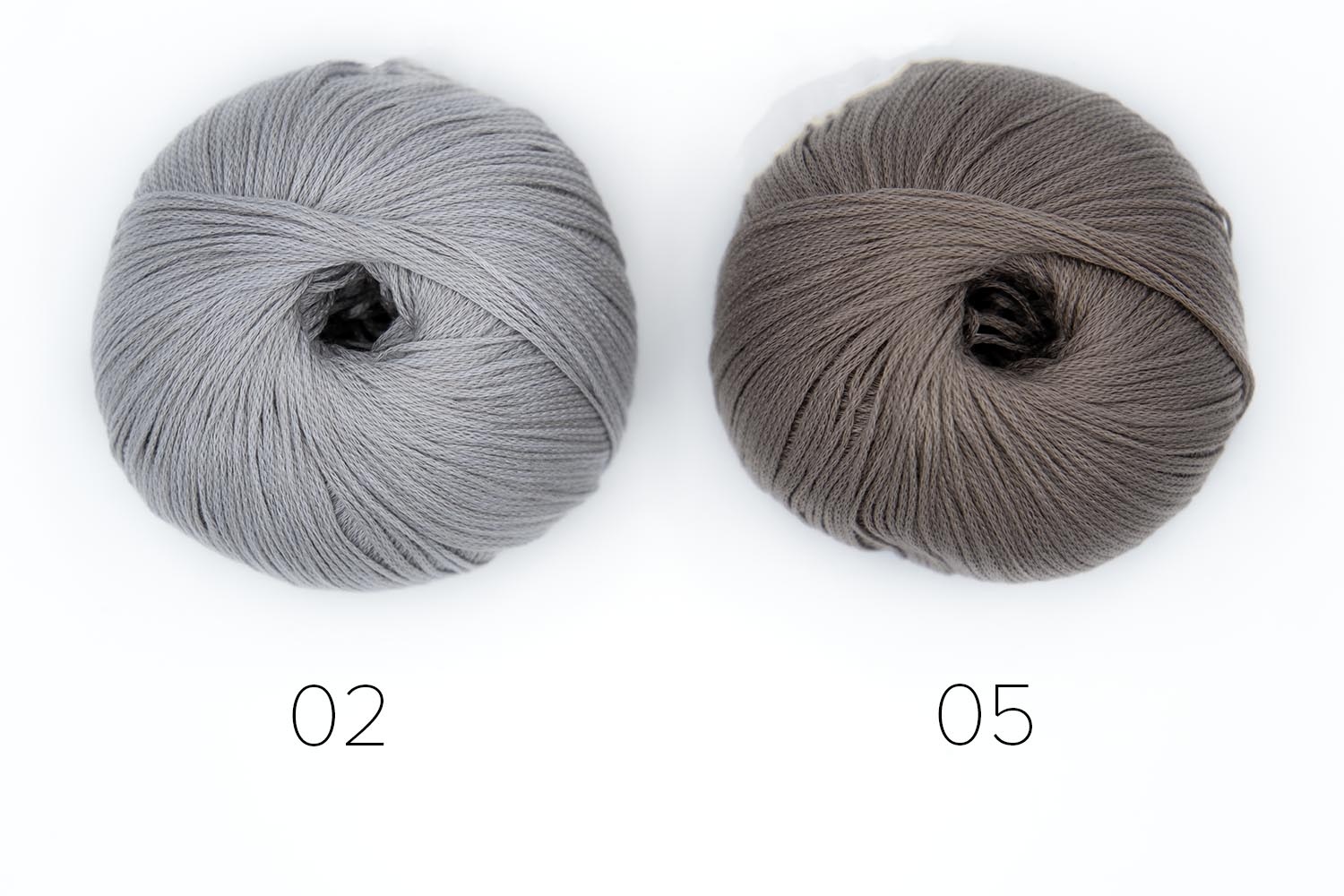 Mais il est très fin, une idée fort sympathique est donc de le mélanger au fil en coton Suave de Pascuali. Vous épaissirez le fil tout en maintenant la douceur, et l'aspect purement végétal. Vous perderez tout au plus en brillance.